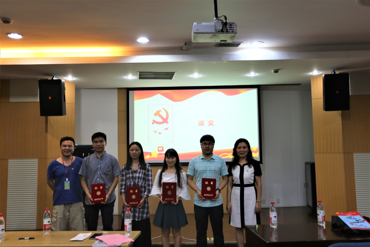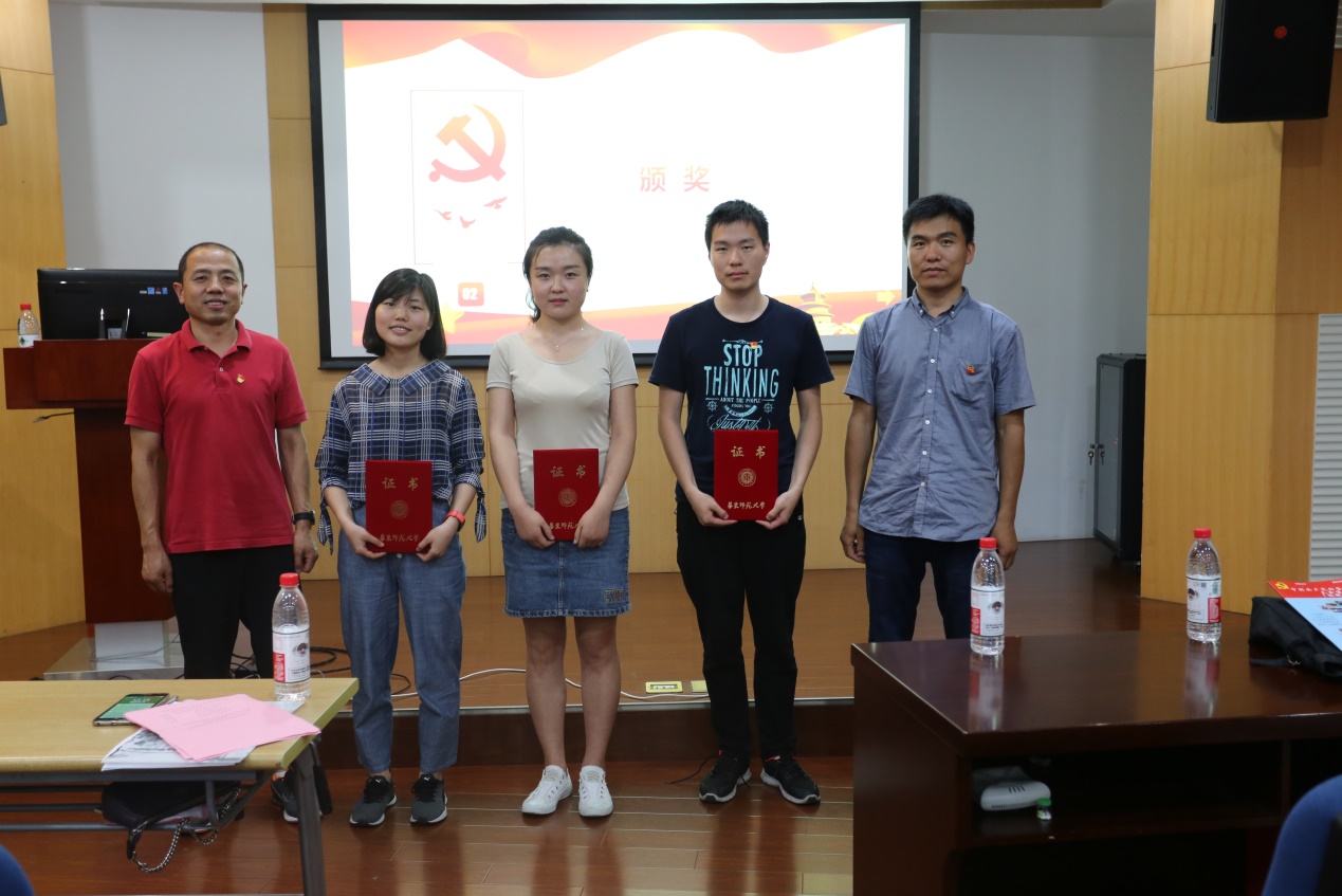 材料科学系主任敬承斌、材料科学系支部书记章继敏老师为学院学生“优秀共产党员”获得者颁奖