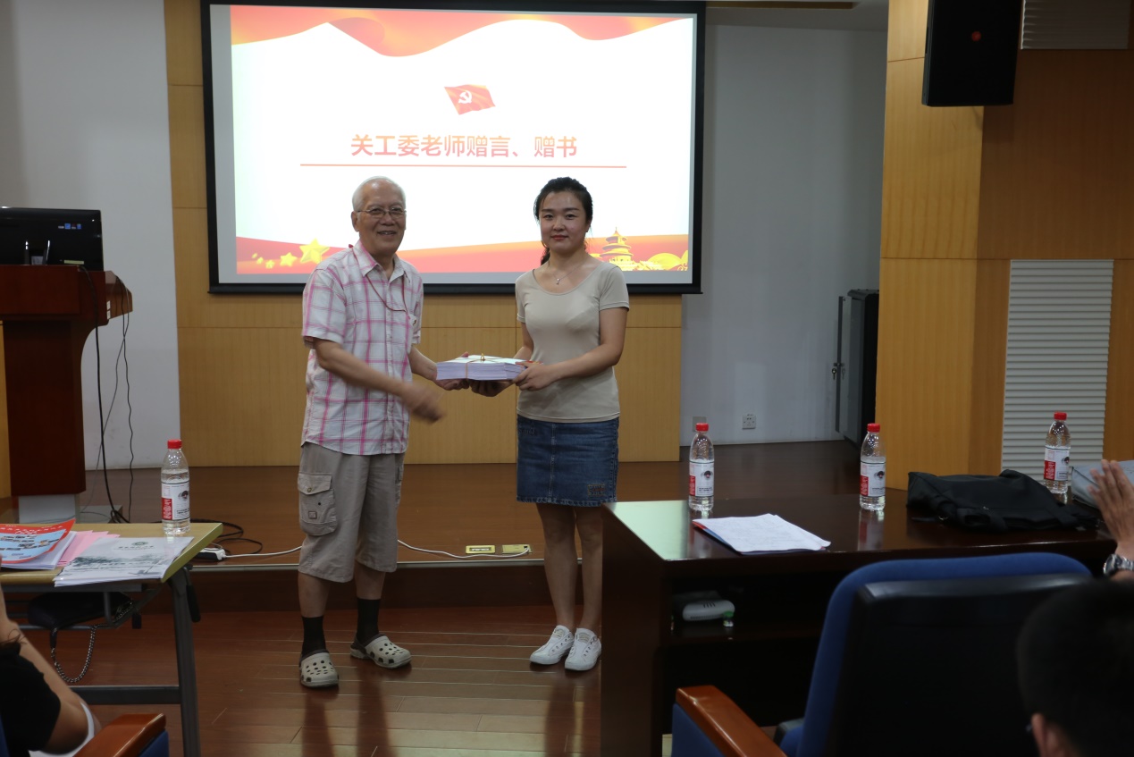 最后,学院原特邀组织员、关工委于龙生教授将自我编纂、修订的《中国共产党的全国代表大会谱(图解)》赠予学院全体党员,并寄语学生党员虽然大家已经迈进象牙塔,但也要秉承共产党员的先进性,呐喊跳出大学“周期律”,坚定信念、牢记使命,赢得美好的未来。