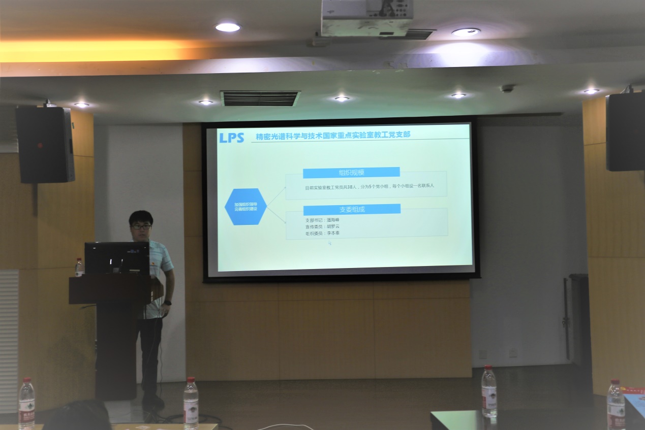 李本泰老师是精密光谱科学与技术国家重点实验室教工党支部的组织委员,作为“先进基层党组织”代表,他与与会党员分享了一年来所在支部组织的各项活动与创新组织生活经验,展现了一个基层党支部的产生的巨大凝聚力和先进性。