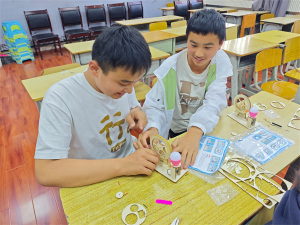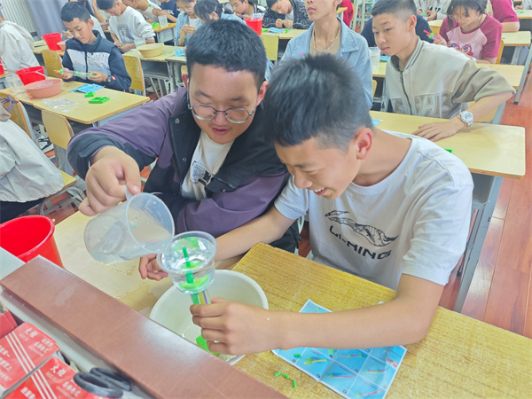 为讲清教材中一个个的知识点,并将知识点与中学生的认知和社会体验结合起来,变成“生活中的物理学”。志愿者们反复打磨、群策群力,精心设计实验主题、自主定制实验材料、全力以赴磨课试讲,确保为金所中学的学生带去主题丰富、内容优质、原理清晰的课程体验,研讨出 “自制发电机”“彩色线”“希罗喷泉”“塑料袋火箭”“潜水艇”“无线充电”“饮水鸟”“走马灯”“自制投影仪”“尺子音乐”等课程,结合初中物理知识,设计拓展科普实验,让金所中学学生在动手操作中深入理解物理规律,探究小实验背后的大学问。