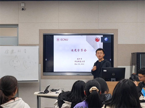 为面向中学生在线讲好物理科普实验课,志愿者们集体磨课、备课。2021级物理电子学博士研究生刘卫才领衔,带领“追光”志愿者进行集体备课,讲授线上课堂互动经验。