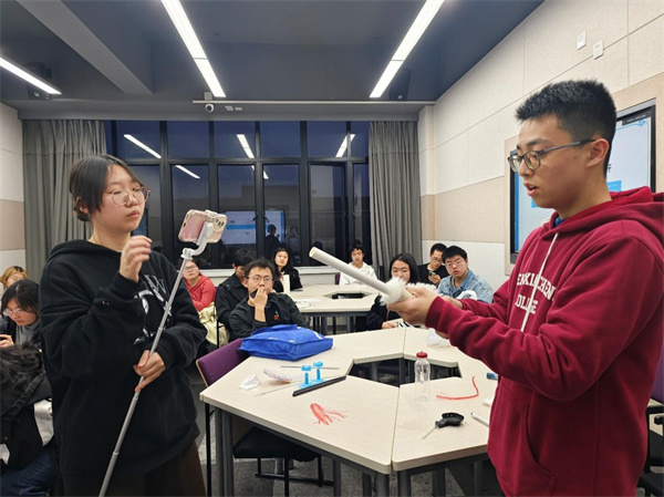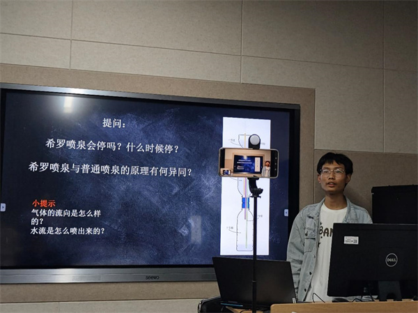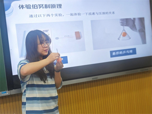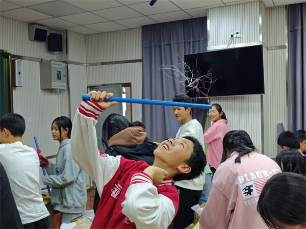 如何让课程更有趣、更入心?2023级物理学专业本科生李轶俊为讲好“摩擦起电”的实验原理,将塑料袋做的“章鱼”悬浮在空中,以“静电悬浮咒”为主题进行授课,让云端的中学生在惊叹之余,深入思考背后的科学原理。