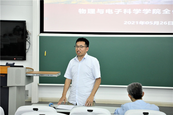 5月26日下午,物理与电子科学学院在闵行校区一教106报告厅召开全院教职工大会。学院党委书记李恺作教师思想政治和师德师风专题学习报告,其他班子成员分别作近期工作通报,近170余名教职工参会,会议由学院副院长武海斌主持。