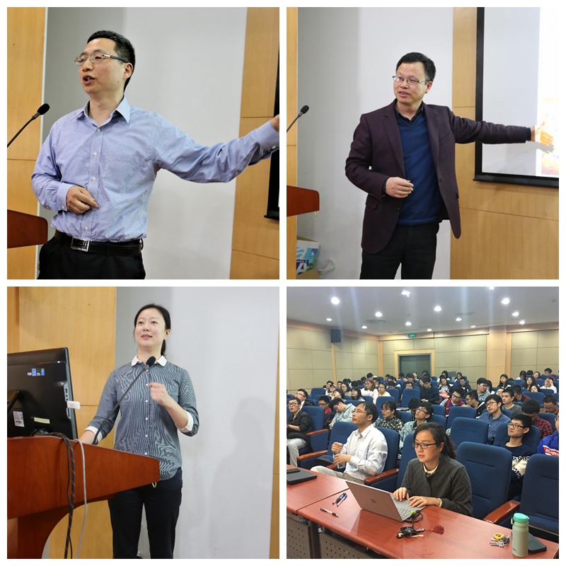 上午从8:00开始,在物理楼226报告厅,来自凝聚态物理的詹清峰老师、原子分子物理研究所的钱静老师、纳光电集成与先进装备教育部工程研究中心的张哲娟老师、理论物理研究所的刘宗华老师、精密光谱国家重点实验室的李文雪老师、核磁共振重点实验室的李建奇老师分别给同学们做了本专业方向见习讲座。