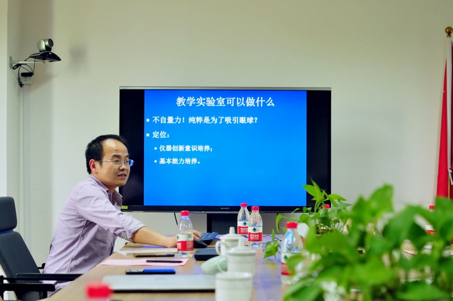 会议邀请中国科学技术大学张增明教授、中山大学蔡志岗教授和复旦大学乐永康教授做专家报告,物理系副系主任柴志方副教授主持会议,物理系主任、实验中心主任赵振杰教授、物理学系教工党支部书记陈丽清教授及物理实验教学中心任课教师、实验员共十余人参加了此次研讨会。