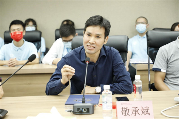 “青蓝工程”专业班主任代表敬承斌鼓励新生快速调整状态,以平和、从容的心态迎接全新的大学生活;以学为重,严于律己,尽快完成从高中生到大学生的身份转变,走好治学“第一步”;充分利用学校、学院的平台和资源,不断提升自我,实现个人的全面发展。
