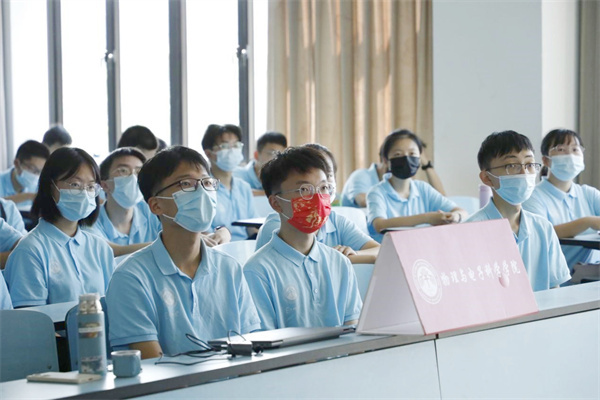 9月9日上午,物理与电子科学学院2022年新生开学典礼在物理楼三楼多功能厅举行。学院党政班子成员,教师代表,专业班主任代表等参会。典礼由学院党委副书记蒋旭主持,440余名学生在线参加。