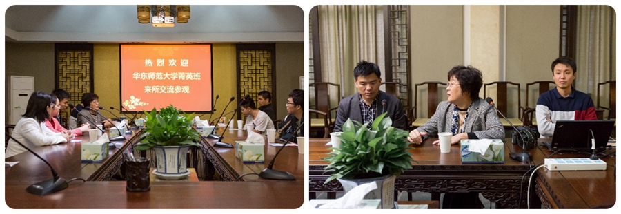 2017年10月18日下午,华东师范大学物理与材料科学学院副院长周先荣老师,副系主任柴志方老师,院长助理钱静老师带着16级菁英班的全体同学前往中科院上海光学机械研究所参观访问,受到了光机所人事教育处副处长丁虹老师等的热情接待。首先,师生们在会议室认真听取了丁虹老师对光机所研究生招生工作的介绍,观看了嘉定形象宣传片和光机所介绍短片。