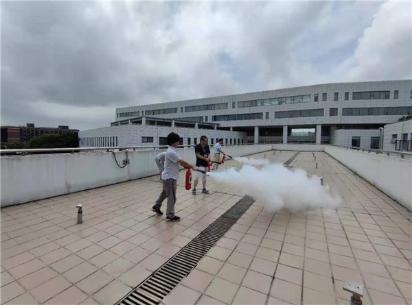 讲座结束后,与会人员在物理楼三楼平台开展灭火器实操演练,师生们依次进入操作区进行了灭火器实操演练,参与积极性都非常高,基本掌握了常用灭火器的使用方法,本次培训和演练活动圆满结束。