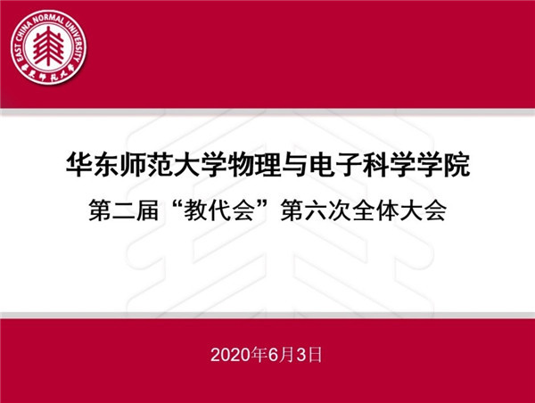 6月3日下午,物理与电子科学学院在线召开第二届教职工代表大会第六次会议,与会代表审议学院《公用房绩效方案 (2018年费用)》,并围绕学院绩效3.0的修订完善进行讨论。会议由学院工会主席徐敏主持。