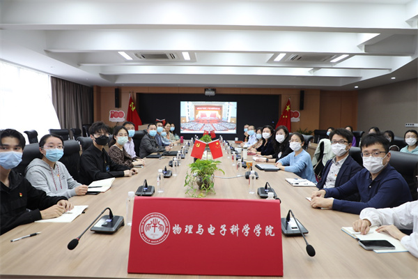 10月16日上午10时,中国共产党第二十次全国代表大会在北京隆重开幕。物理与电子科学学院党委组织理论中心组成员、师生党员代表30余人在物理楼三楼多功能厅集体观看并开展交流研讨。同时以支部为单位,组织师生线上集体观看学习。