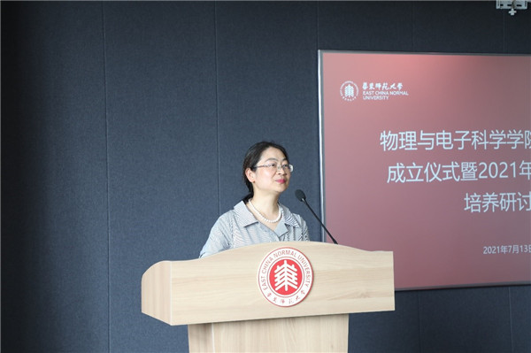 学校教务处处长孟钟捷在开场致辞中,对学院“名师工作室”成立表示祝贺,对各位专家的出席与见证表示感谢。他从华师大办学理念和办学历程出发,指出“物理与电子科学学院的人才培养历程是学校将拔尖人才培养作为育人引擎的一个缩影”,同时高度肯定了学院取得的育人成效。他表示,此次成立“名师工作室”是学校深入推进育人模式改革的前行动力,希望各位专家多提宝贵意见,继续支持学校、学院拔尖人才培养和改革发展。