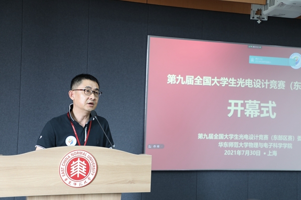 孙真荣首先致欢迎辞,他谈到,学科竞赛是卓越育人的重要途径和平台,近年来,学校通过承办学科赛事、组织学生备赛参赛等进一步强化了创新创业育人功能。作为此次赛事东部赛区的承办单位,华东师大物理与电子科学学院办学特色鲜明、师资力量雄厚、科研优势突出、育人成果丰硕,期待通过此次赛事,进一步加强东部赛区各高校在光电领域人才培养、技术应用等方面的交流和合作,赛出成绩、赛出风格,共同提升创新育人能力和水平。