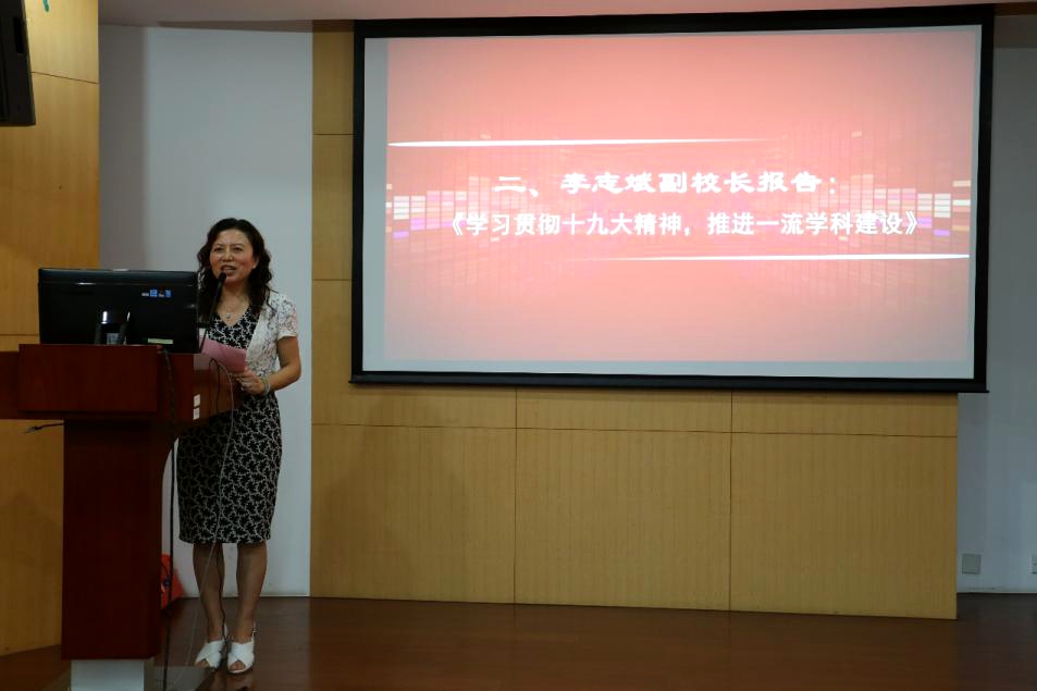 学院特别邀请李志斌副校长为教职工做了《学习贯彻十九大精神,推进一流学科建设》的主题报告。李校长以党的十九大胜利召开为时间节点,介绍了国家最新的学科建设政策指向,一流大学建设思路,十九大前后中办国办出台的《关于深化教育体制改革的意见》、《关于全面深化新时代教育队伍建设改革的意见》等文件精神,双一流建设高校学科名单以及第四轮学科评估结果。李校长还深情回顾了一代又一代华师人在为学校加入“211工程”、“985工程”、“双一流高校”建设名单做出的巨大攻坚和艰苦卓绝的奋斗历程。报告结束后,与会老师积极发言提问,就自己关心的学科建设、科研经费申请等问题与李校长展开了热烈互动。