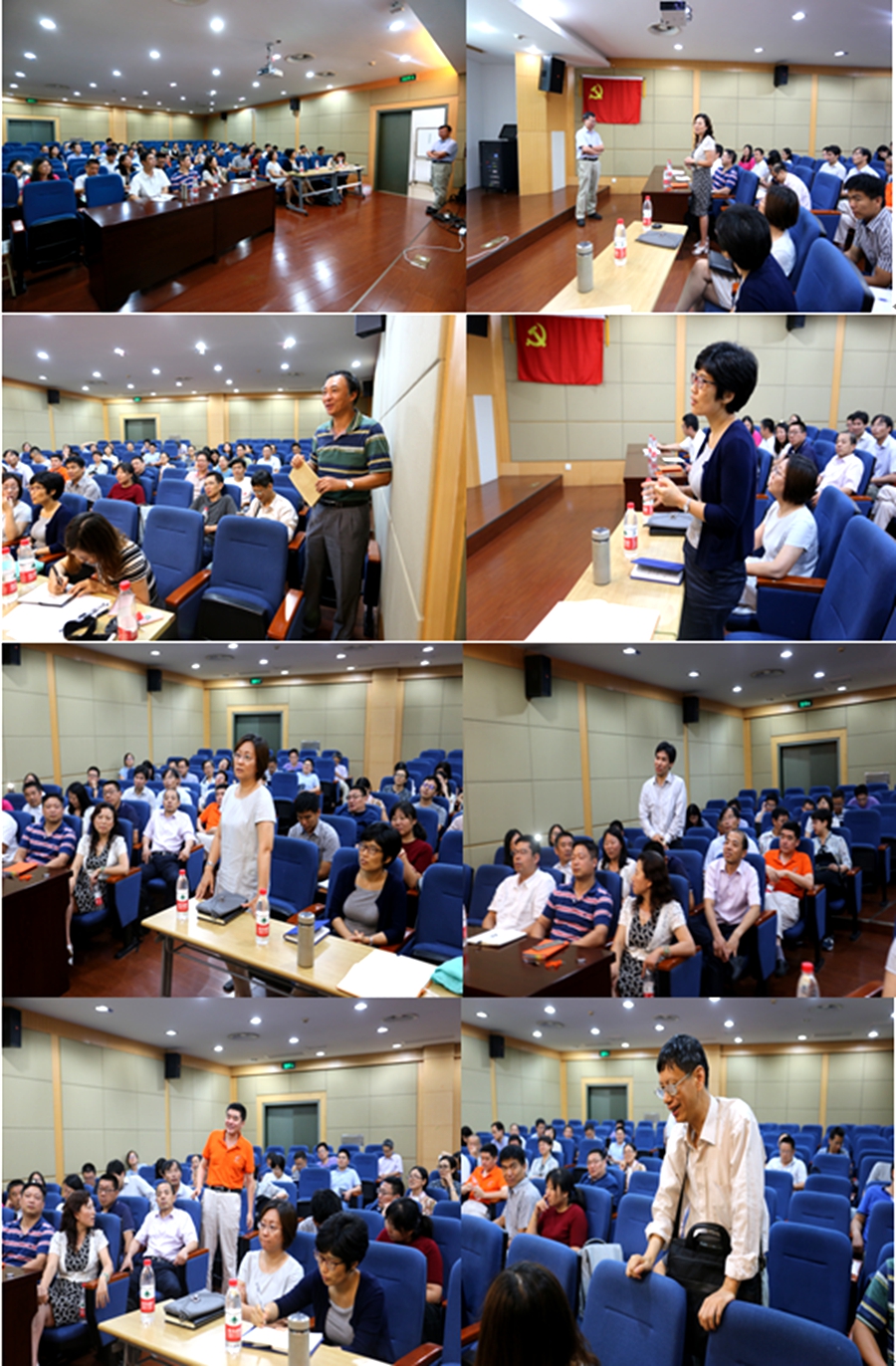 2018年7月5日上午9:00物理与材料科学学院在学院党委的领导下请来了北京大学安博(中国)刘玉鑫教授于物理楼226和学院专任教师一起,结合北大的本科人才培养模式,进行一场“北京大学物理学科关于人才培养的思考与实践”的大讨论。山东师范大学物理系主任孟庆田教授、物理专业负责人高守宝副教授、光电专业负责人滕树云教授、赵珂教授;华东师范大学教务处谭红岩副处长、信息与材料科学学院教学院长石艳玲教授、生命科学学院江文正教授、化学与分子工程学院李艳艳老师;物理与材料科学学院党委书记李恺教授、教学院长周先荣教授及五十多位专任教师出席了本次讨论。