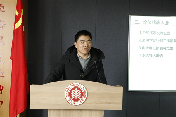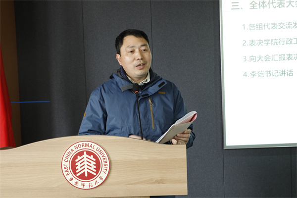 学院院长、精密光谱国重实验室主任程亚强调,“双代会”是教职工参与学院民主管理的有力体现,对促进学院高质量发展具有重要的作用。在过去的一年里,学院按照学校整体规划布局,各项工作有力推进并取得显著成效。2024年已经来临,希望学院教职工始终秉持追求卓越的干劲,在未来的征途中遇见更好的自己,期待各位代表继续以高度的主人翁精神,充分利用好教代会平台,踊跃为学院发展建言献策。