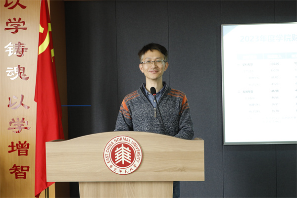 赵振杰作“物理与电子科学学院工会2023年工作报告”。他从“充分发挥教代会的作用”“加强工会自身建设”“积极为教职工服务”等方面回顾了学院工会一年来的工作,汇报了学院工会2023年财务收支情况。
