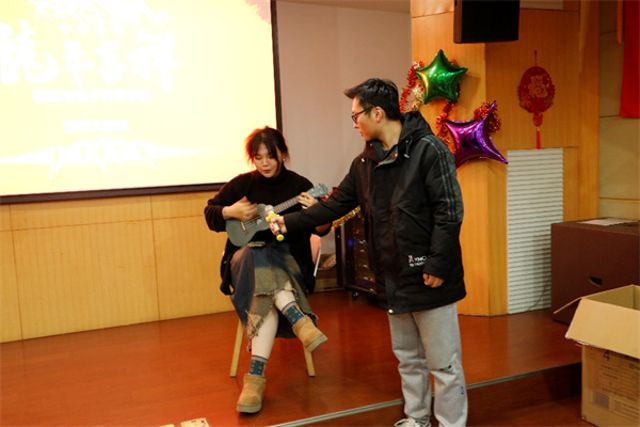 联欢会节目精彩纷呈,周婧雯同学弹唱的《第一天》、保睿同学的舞蹈《Love dive》,展现了我院学子的歌舞才艺;黄荣的《北国之春》、刘宗华的《山茶花》、徐敏的京剧《霸王别姬》、孙海涛的《传奇》、黄文峰的《青花瓷》、周杰和霍思宇的《我的祖国》等演唱曲目,掀起了一个个联欢会高潮。张哲娟的《猜灯谜》更是让全场开动脑筋、气氛热烈。