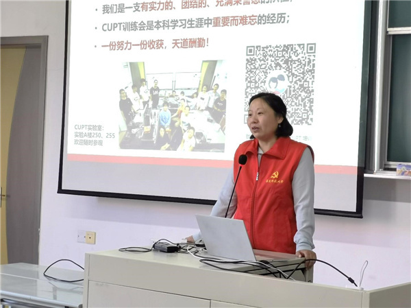 随后,支部邀请中国大学生物理学术竞赛(CUPT)指导教师夏成杰,为新生详细介绍了CUPT的基本情况以及历届同学取得的优异成绩,鼓励师范生踊跃参加、磨炼毅力,逐步进入科研训练。