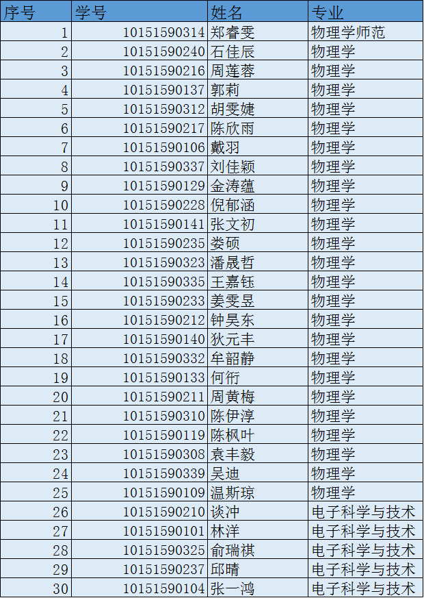 根据《物理与材料科学学院推荐免试直升2019年硕士研究生选拔方案细则》,按专业成绩(60%)、专业能力素质(20%)、素质类加分(20%)的综合排名,拟录取结果如下:
