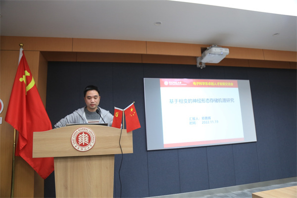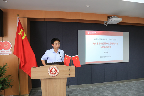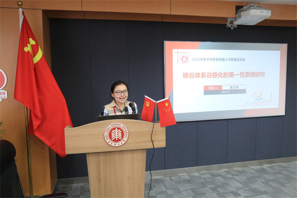 11月19日,2022年电子科学系卓越人才发展交流会在物理楼三楼多功能厅召开,全系40余名教师参会。会议由电子科学系教工党支部书记黄荣主持。