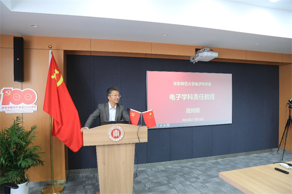 学科责任教授段纯刚介绍了极化材料与器件教育部重点实验室的评估答辩情况、上海类脑智能材料与器件研究中心的建设进展,他希望全系教师要抓住机遇、迎接挑战,在科研、教学和人才培养等各项工作中求实创新、奋勇争先,促进电子学科和电子科学系的良性发展。