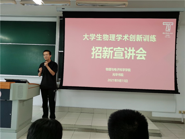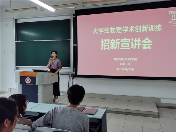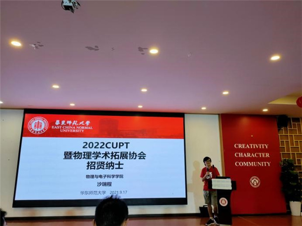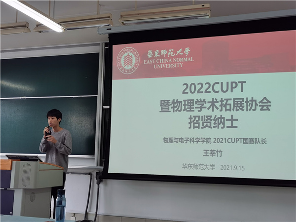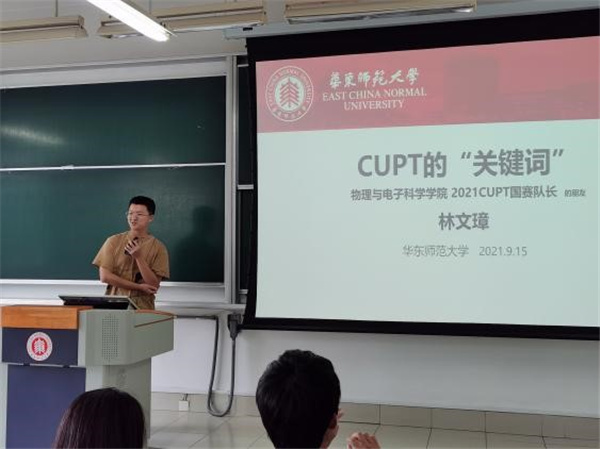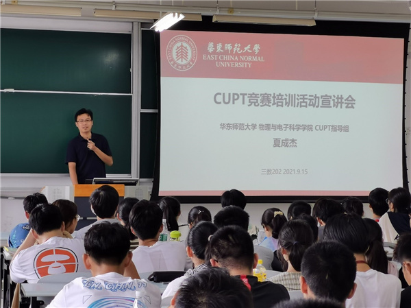 近期,物理与电子科学学院联合光华书院、孟宪承书院举办新一届中国大学生物理学术竞赛(China Undergraduate Physics Tournament,以下简称CUPT)暨我校物理学术拓展协会学生社团招新宣讲会。