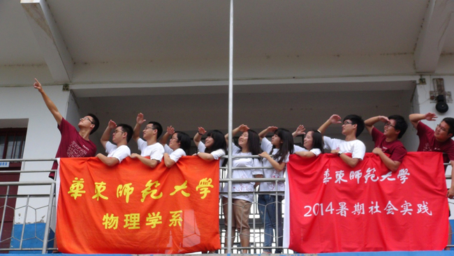 2014年7月,华东师范大学物理学系励行志愿者队一行12人,前往湖南省株洲市茶陵县潞水镇首团小学,围绕着“续梦·探索·改变”,开展了为期半个月的“续梦首团”暑期支教活动,物理学系团委书记王元力担任志愿者队指导老师,物理学系2012级学生方彬担任励行志愿者队队长。此次支教活动主要包括课程教学、素质拓展、励行讲堂、家访、社会调研、文艺汇演等六大板块,突破传统支教课堂教学模式,更加注重孩子的素质拓展和能力培养,寓教于乐,以“润物细无声”的方式帮助大山深处的孩子们创获智慧、陶融品行,传递梦想。此次支教项目最终通过层层角逐,从众多社会实践项目中脱颖而出,被评为“上海市优秀社会实践项目”,本次支教的指导老师王元力也获得了“优秀指导教师”的称号。这既是对师大物理人实践精神的肯定,也更加激励了新的物理人不断投身社会实践。