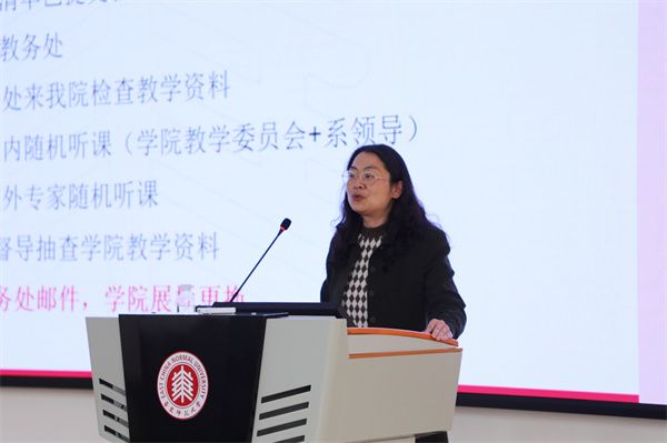 学院副院长徐敏通报近期本科教学工作情况,包括教材审核的推进情况和本科教学评估准备的工作进展,重点对本科教学评估的评估方法、评估途径、评价标准、时间节点等方面进行介绍,并提醒教师围绕“迎评促建”做好充分的准备工作。