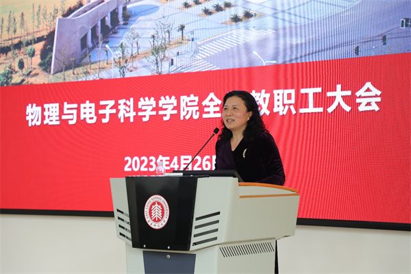 4月26日下午,物理与电子科学学院在一教206报告厅召开4月全院教职工大会。校人事处师资管理办公室主任战新华应邀解读《华东师范大学高级专业技术职务任职资格与基本条件(2022年版)》(以下简称“黄皮书”)。学院党政班子成员通报近期重点工作,200余名教职参会。会议由学院党委书记李恺主持。