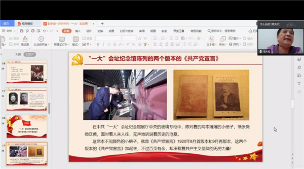学习会上,彭宗安同志首先从中共一大的两个时间、两个会址、一大纪念馆中陈列的两个版本的《共产党宣言》、一大代表中的伟人等五个方面声情并茂地阐述了中共一大的召开过程,结合生动的历史故事梳理了中共一大的脉络和精神。彭宗安同志谈到,千言万语、千头万绪讲不完中共一大的故事,一大召开和中国共产党诞生,给灾难深重的中国人民带来了光明和希望。