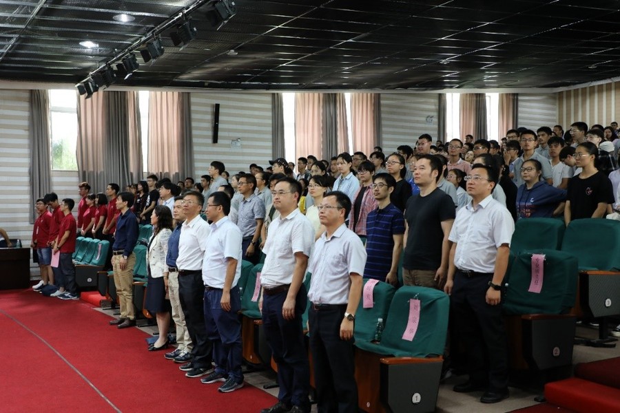 在庄严的国歌声中,物理与电子科学学院2019级新生开学典礼正式开始。