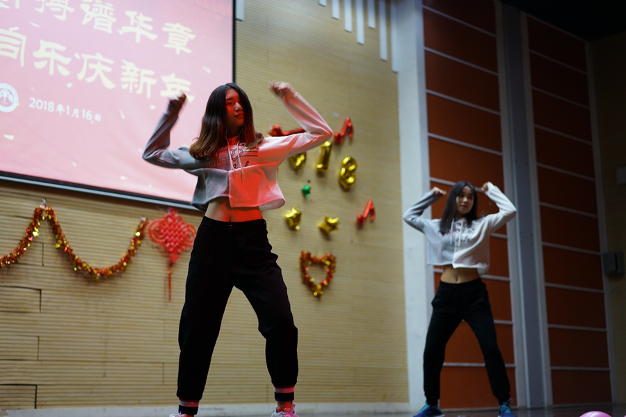 联欢会在学院师生的共同精心筹备下拉开了帷幕。研究生会的同学们带来的热情洋溢的开场舞“As if it's your last”,瞬间点燃全场欢乐的气氛。
