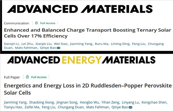 近期,极化材料与器件教育部重点实验室保秦烨课题组利用光电子能谱原位表征技术(UPS/IPES/XPS)研究软物质半导体界面电子结构与器件性能之间的构效关系,指导构建高效光伏器件。成果分别以“Enhanced and Balanced Charge Transport Boosting Ternary Solar Cells over 17%”与“Energetics and Energy Loss in 2D Ruddlesden-Popper Perovskite Solar Cells”为题发表在Advanced Materials (影响因子:27.3)和Advanced Energy Materials(影响因子:25.2)上。华东师范大学为论文的第一单位,我院研究生李丹琴、杨坚铭(2019年校长奖学金获得者)分别为第一作者,保秦烨为论文的唯一通讯作者。