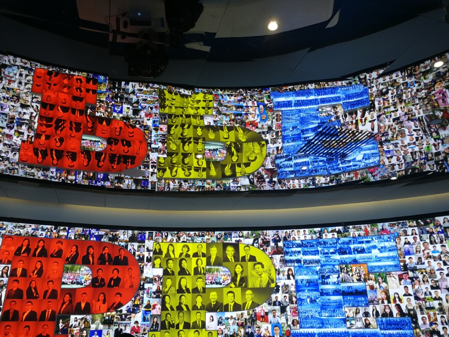 一进入大门,四张巨大的杂志封面映入眼帘,分别展示了微创公司在全球的影响力与成就。大厅里还从多方面展示了公司文化:有一面播放公司活动视频的大屏幕,有一面公司员工及领导团的生活照片墙,还有公司发展万年历,使师生们充分感受到该公司温馨的企业文化。