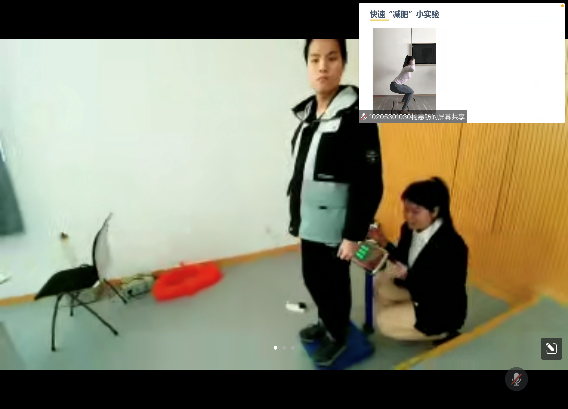 另外三位同学抽取到《牛顿运动定律的应用-超重和失重》赛题,陈佳妮同学通过回顾“测量重力常用的两种方法”引入,串联起初高中知识,课堂结构设置巧妙;杨惠钫同学通过“弹簧测力计拉手机”“纸袋拉砝码”“快速减肥”等多个小实验,调动学生的学习兴趣,增强了学生的课堂参与度;张航同学通过带领同学们“云游游乐场”的方式,对多个项目背后的超重、失重现象进行讲解,并通过自制“钓鱼”教具吸引学生的兴趣,教学方式非常新颖。