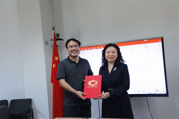 为进一步做好学院毕业生的实习实践指导工作,学院党委书记李恺为季长江颁发校外指导教师聘书。