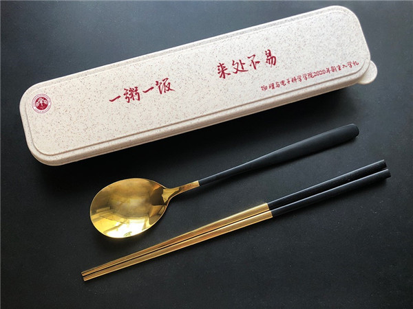 入校伊始,2020级新生收到了学校、学院准备的新生大礼包,学院将“尚节俭”“会学习”“爱运动”等主题融入入学礼,包括主题简易运动包、便携餐具盒和学院主题文化衫。在简易运动包上,印有“会学习”“爱运动”等字样,期待新生入学后保持自主学习、定期运动等良好习惯;在餐具盒上,印有“一粥一饭,来处不易”字样,希望同学们“珍惜粮食、崇尚节俭”。