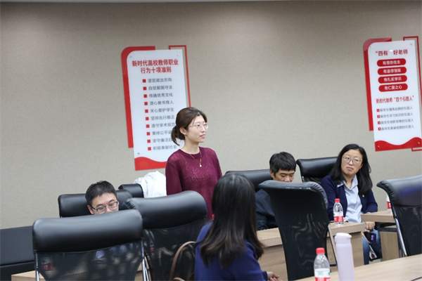 在沟通交流环节,新进教师们各自介绍了自己的研究方向和目前工作进展,与会教师就课堂内容设计、在线教学资源、教学科研如何相互促进等问题展开讨论。