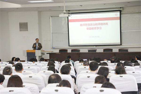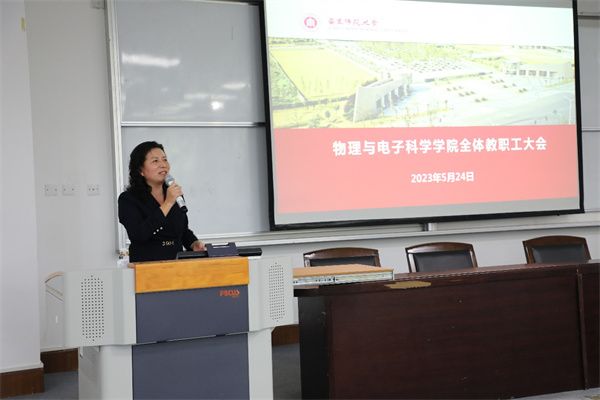 5月24日下午,物理与电子科学学院在三教109报告厅召开5月全院教职工大会,校纪委副书记、纪委办公室主任、监察处处长俞黎阳作“坚守法纪底线树立清风正气”专题报告,学院党政班子成员通报近期重点工作,200余名教职参会。会议由学院党委书记李恺主持。