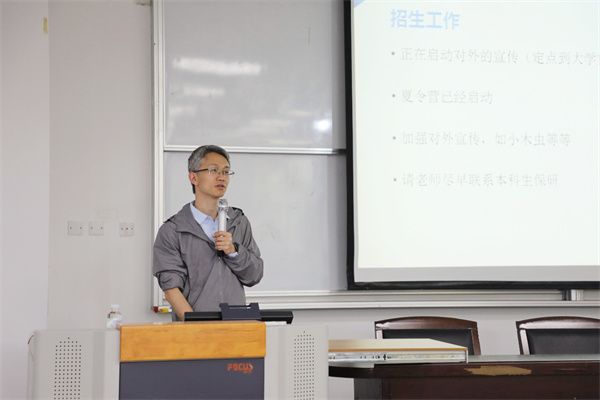 学院副院长胡炳文对招生工作和研究生论文答辩进展进行通报。他谈到,学院正在启动对外定点招生宣传,夏令营报名也已启动,希望学院教师加强对外宣传,推动招生工作顺利进行。胡炳文同时介绍了主题教育调研中研究生集中反馈的几点问题,希望研究生导师通过多种形式,推动研究生加强交流,互融互促。