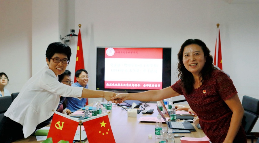 李恺谈到,学校教务处对学院的本科人才培养工作给予了充分地支持,学院历来高度重视本科人才培养,在“不忘初心、牢记使命”主题教育中,围绕“凝炼物理师范教育特色”“推进本科人才培养”形成了两个主题调研。各教工党支部要围绕新时代、新要求,主动发挥战斗堡垒作用,围绕编写教材、打造金课等统一规划、攻坚克难。支部党员更要有担当,针对本科人才培养中的突出问题形成“突击队”,进一步推动学院本科人才培养实现跨越式发展,也期待以此次支部牵手为起点,进一步加强学院和教务处的交流与合作。