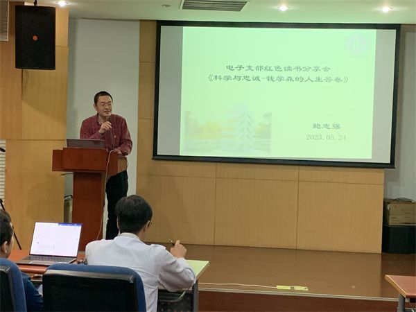 电子科学系教师党员鲍志强分享了他对《科学与忠诚-钱学森的人生答卷》的读书感想。他深入剖析了钱学森的爱国情怀和科研品质,同时表示,钱学森的坚定信念和忠诚精神令他十分感动,科研工作者应该时刻秉承对祖国和人民的忠诚,通过自己的科研工作为国家的发展作出贡献。