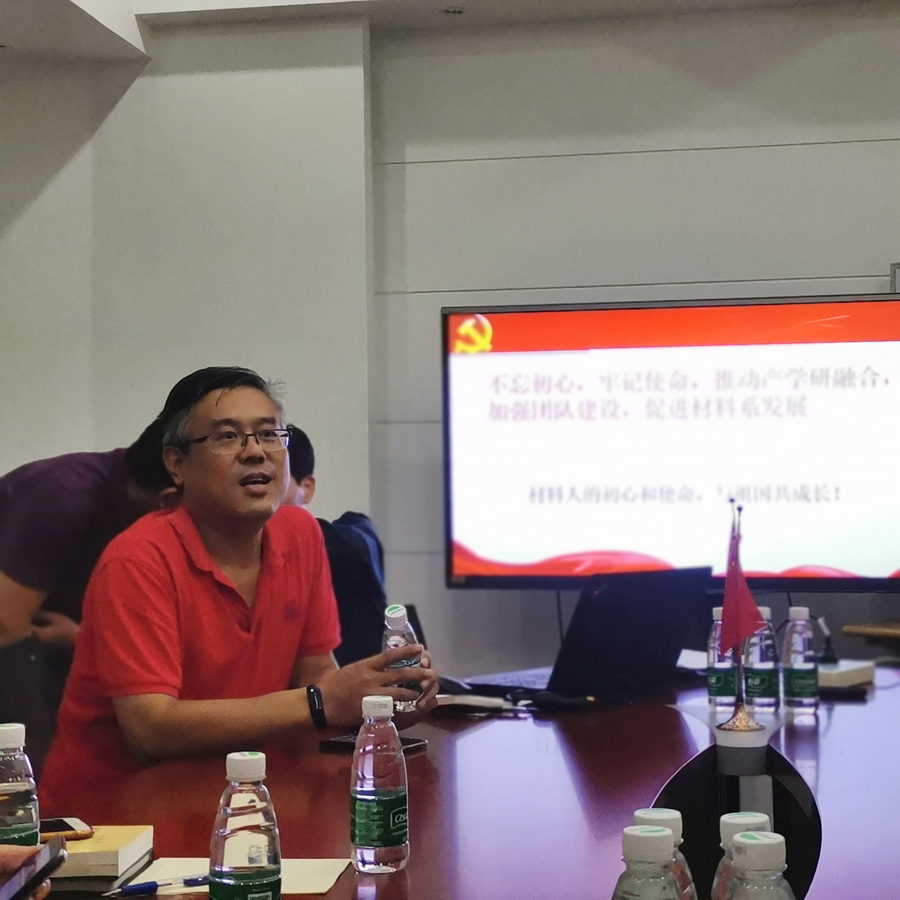 敬承斌首先与支部党员交流了参加学校党支部书记培训的学习心得,并对材料系新学期的组织生活和落实主题教育“八个一”的工作计划进行安排部署。敬承斌表示,材料领域是涉及国计民生的重要基础工业之一,“材料人”应该有为国家材料工业谋发展的初心和担当,支部要围绕新中国成立70周年和“不忘初心、牢记使命”主题教育要求,深入开展爱国教育活动,并以严东生等老一辈材料科学家为榜样,与祖国共成长。