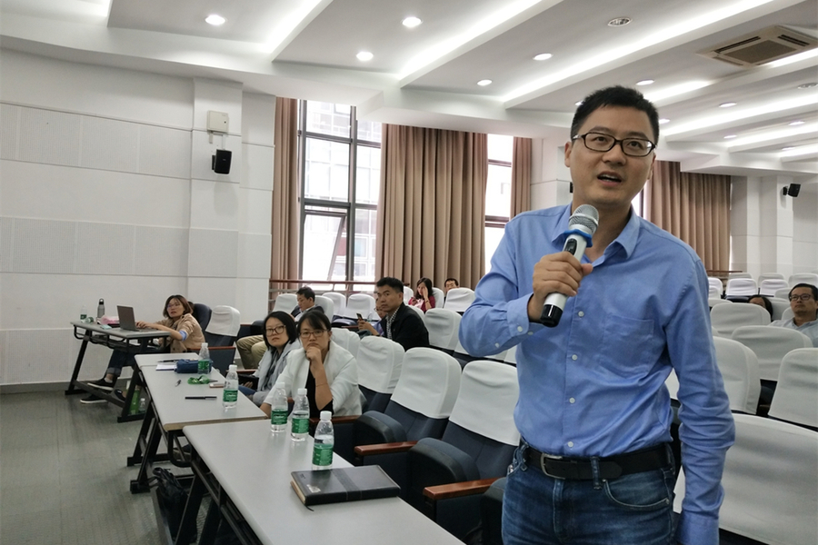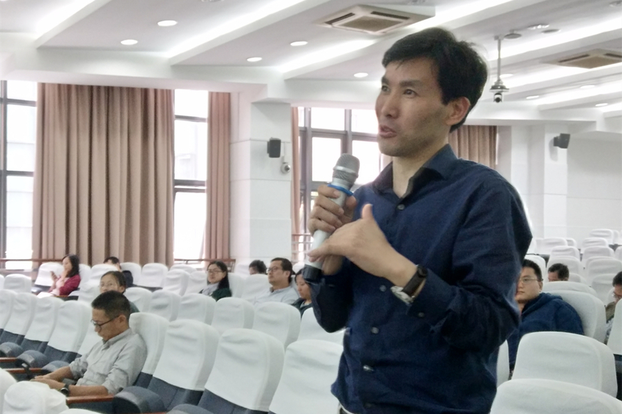 最后,学校创新创业学院常务副院长阮平章作《创新创业与人才培养》主题报告。阮平章指出,在“大众创业、万众创新”的时代背景下,双创教育既是国家发展的需要,也是人才培养的需要,学校双创学院目前正在围绕课程建设、竞赛筹办、指导体系、项目孵化等方面加大推进力度、结合各方资源,以形成双创合力。他表示,华东师大作为新中国第一所社会主义师范大学,要结合学校特色推进双创教育,培养具有“教育家情怀、企业家精神”的双创人才,以学生的“全面素质和能力达成”为中心,不断打破固有模式,提升人才竞争力。阮平章高度肯定了物理与电子科学学院的双创工作,建议学院立足基础学科特色、发挥科研基地优势,做好成果转化和凝练,助力学校双创工作。阮平章还围绕平台搭建、资源整合、课程对接等具体问题,与学院教师进行了深入交流。